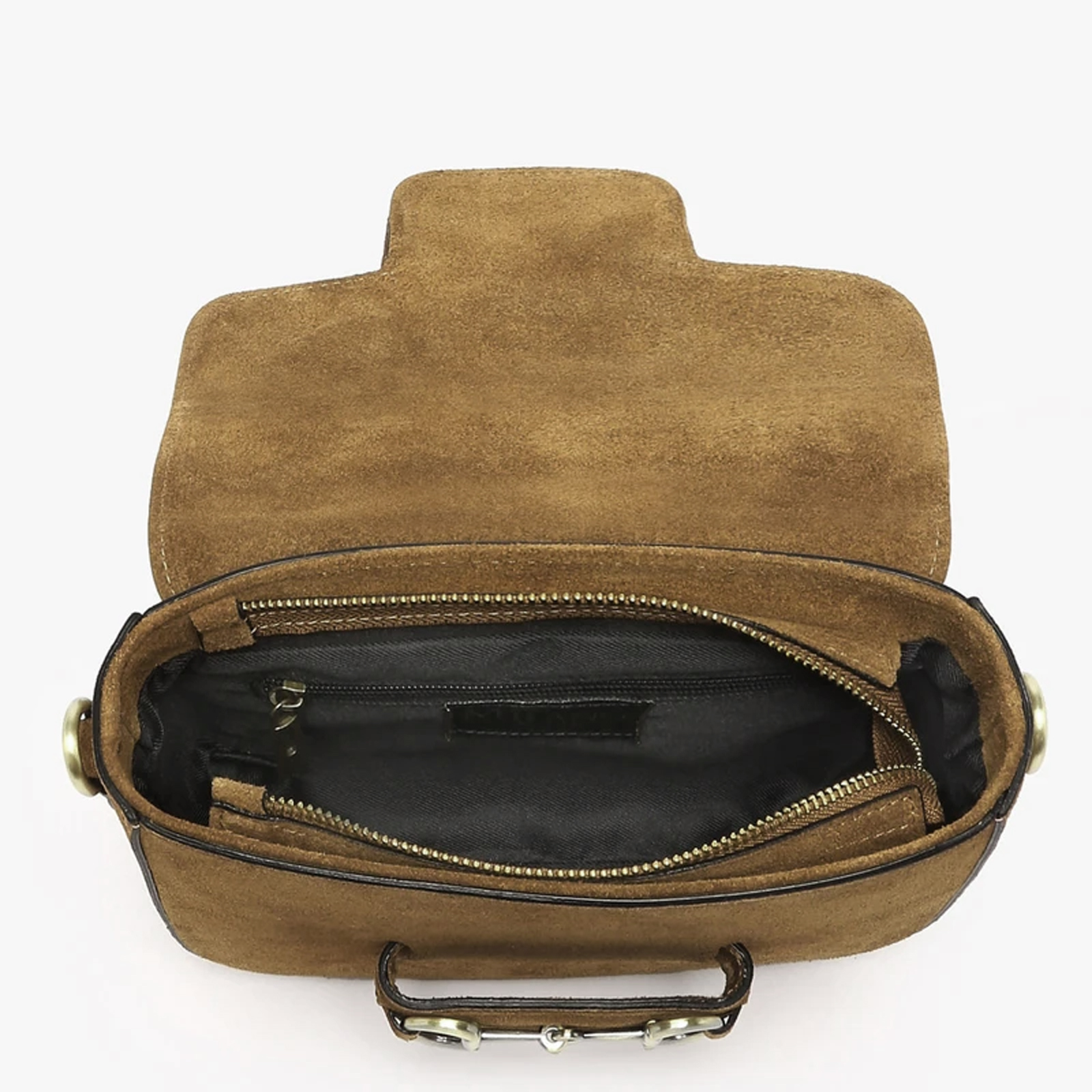 Bolso bandolera de ante italiano con herraje ecuestre metálico – hecho en Italia (Modelo 1383)