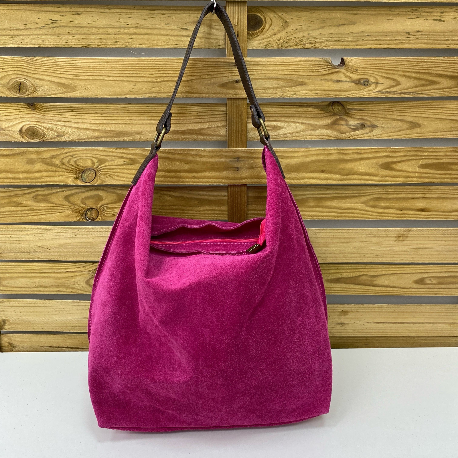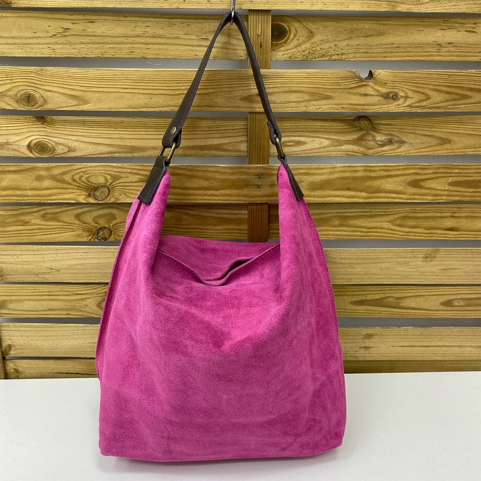 Bolso shopper plano fabricado en ante italiano auténtico, en tono burdeos sofisticado y tendencia total en Europa. Diseño minimalista, ligero y elegante con asas decoradas con tachuelas metálicas y bandolera larga extraíble para mayor comodidad.