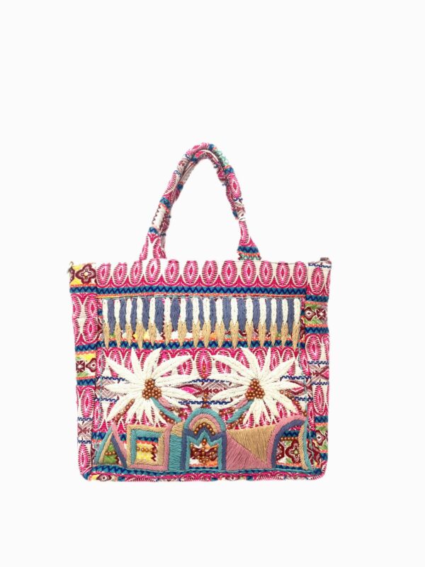 El Bolso Étnico MKH-1394 es una pieza artesanal llena de color y estilo. Confeccionado con tejidos de alta calidad, presenta un bordado llamativo de palmeras y motivos geométricos que reflejan la esencia de la moda boho chic. Su tamaño práctico y su diseño único lo convierten en un complemento ideal tanto para el día a día como para ocasiones especiales.