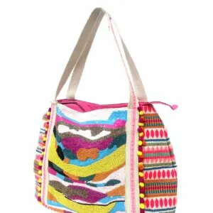 MKH-8611 Bolso Étnico Grande con Lentejuelas, Abalorios y Pompones – Diseño de Palmeras | Venta al por Mayor